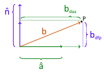 Projecting a vector onto a unit vector is a use that I’m much less familiar with. Hopefully as I type this and research it more, it will become clearer. The essence is that you have a vector pointing to point . You have a unit-vector pointing some direction. You want to know one of two pieces of information: